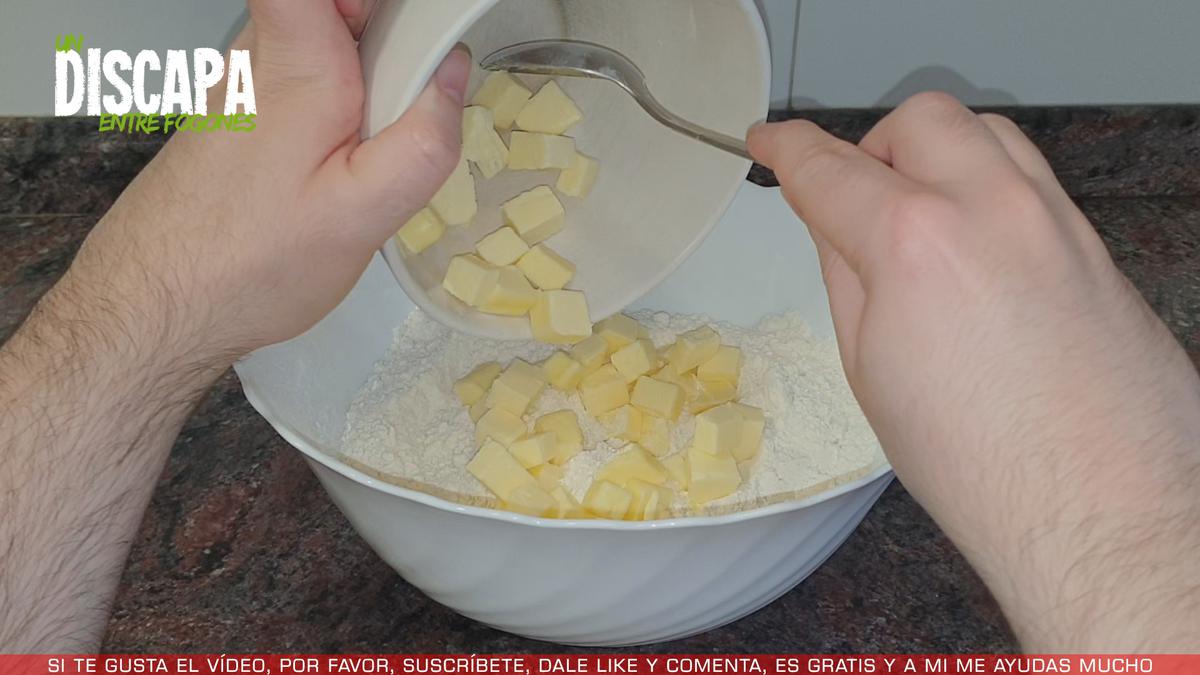 A continuación añadimos la mantequilla a temperatura ambiente y mezclamos bien. Si os resulta más cómodo, podéis mezclarlo con las manos.
