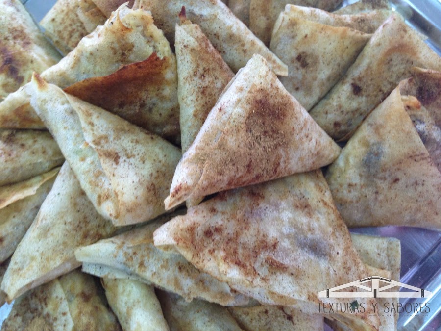 Montar las pástelas sobre molde para formar paquetitos. Poner dos hojas mas dobladas cubriendo bien el fondo para que no se rompa luego y haga de base las hojas de pasta brick las iremos pincelando con la mantequilla derretida.