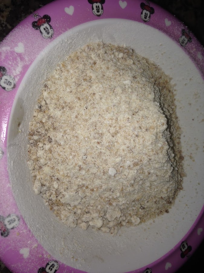 Ahora las ponemos extendidas sobre una bandeja de horno y las tostamos a 180 grados hasta q las veamos doradas. Una vez frías vamos a separar unas cuantas para la decoración y el resto las pondremos en un accesorio picador y las trituraremos junto con el azúcar Glass y el chorrito de agua de azahar y está pasta la reservaremos.