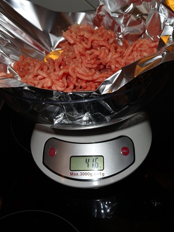 400 gramos de carne picada de pollo, pavo, cerdo o ternera. (Los marroquíes utilizan cordero, que también esta “mu güeno”)