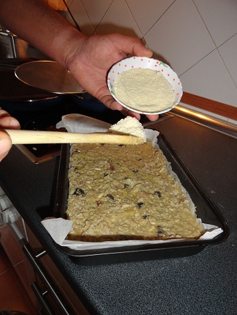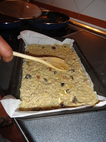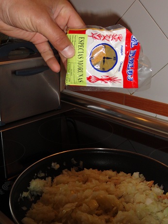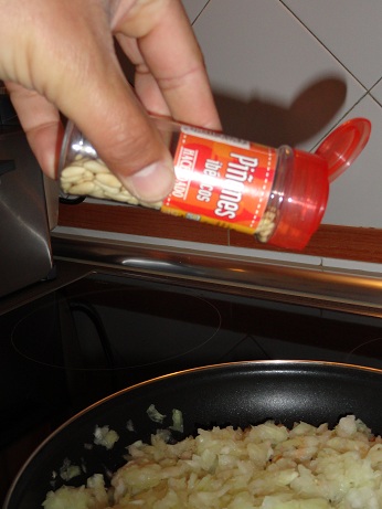 2.-Echar las especies (a ojímetro), los piñones y pasas al gusto.