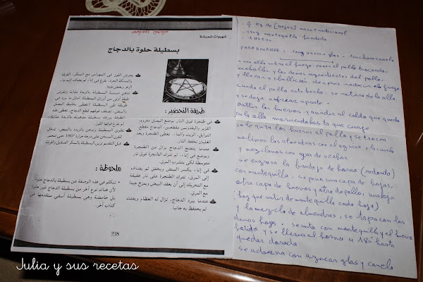 Pero sobre todo porque esta receta de pastela me la dio la mamá de uno de los alumnos de mi marido, pero...no os riáis... me dio la receta en su idioma...con lo que tuve que pedir la traducción a una de las alumnas de 6º... ademas las cantidades eras muy grandes, me tocó reducirlas... que me perdonen si no quedó exactamente como en la receta, aún así quedó deliciosa, ¡¡Gracias a las dos!!