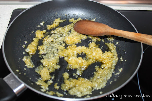 En una sartén ponemos un poquito aceite de oliva y sofreímos la cebolla picadita.