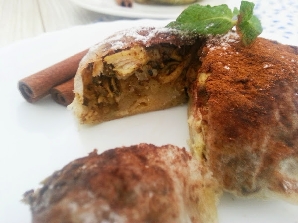 La receta de hoy la descubrí en un restaurante marroquí hace unos meses. Una Pastela moruna, es como un emparedado de pollo con el toque que tiene la comida árabe, un toque suave de picante, un toque dulce y un toque salado, todo esto en un mismo bocado..!!! Hmmmm !!!....Como veis, una receta llena de contrastes.