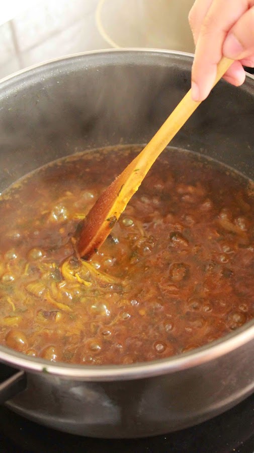 3. Removemos muy bien con una cuchara de madera hasta que espese un poco la salsa.