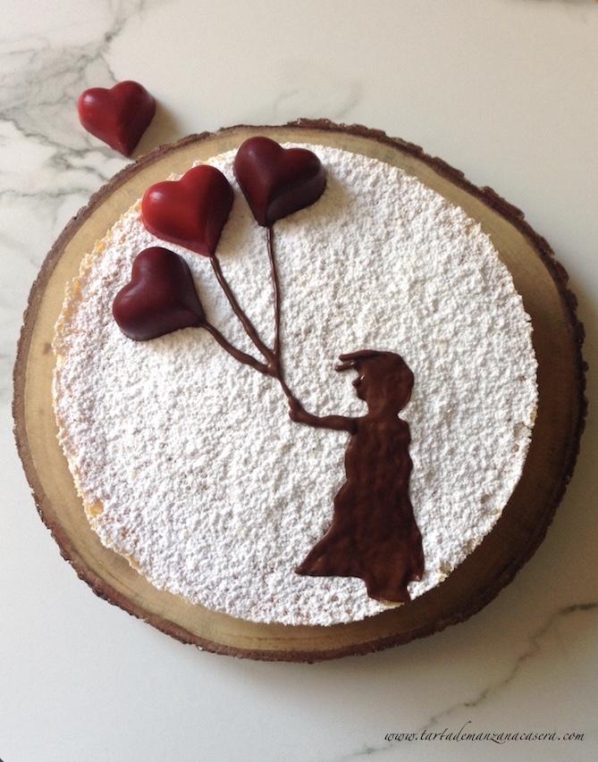 Cuando estuvimos en Londres me encantó un graffiti de Banksy que intenté emular adornando esta Souffle Cheesecake con los deliciosos bombones de Hofmann.