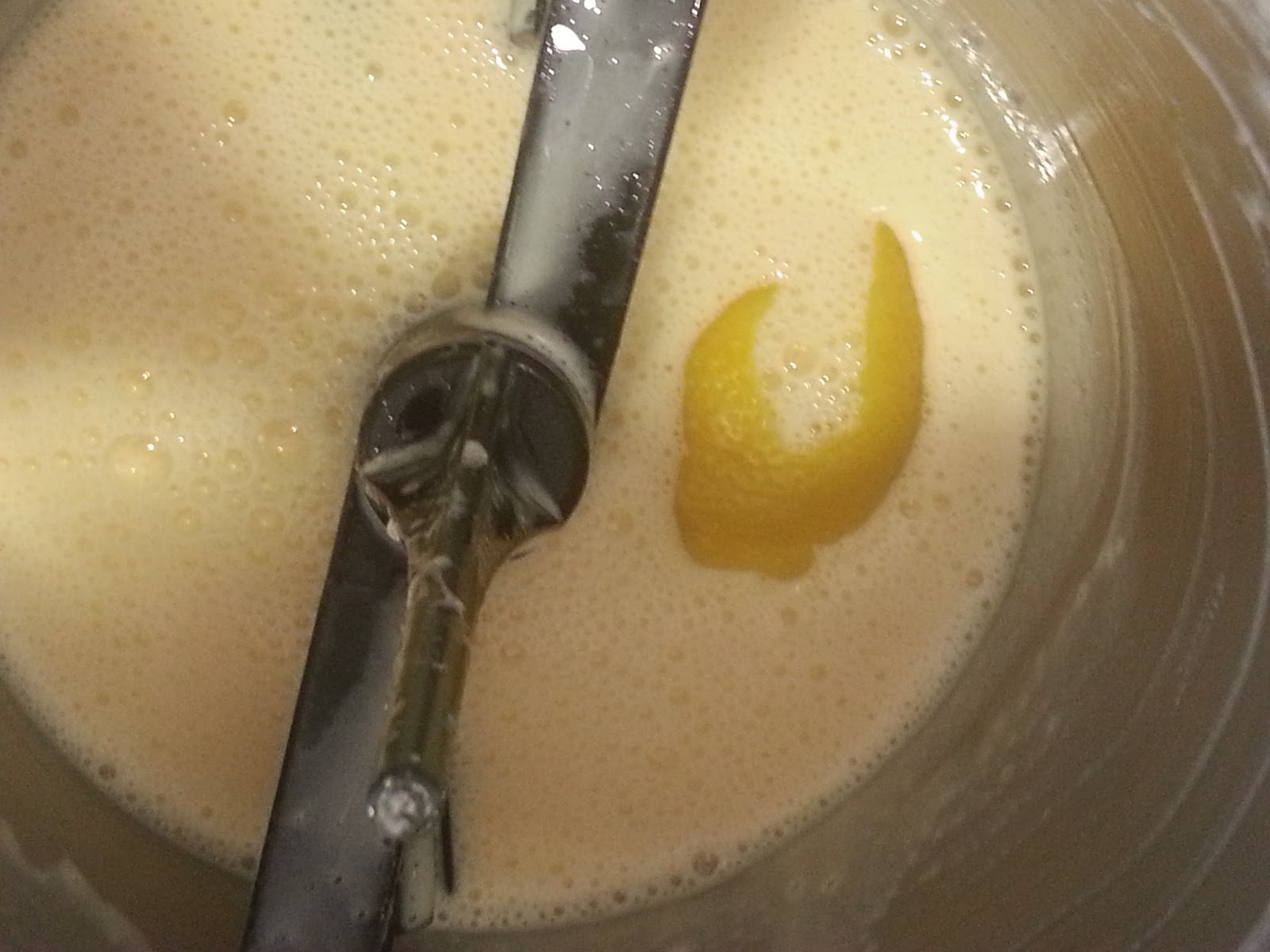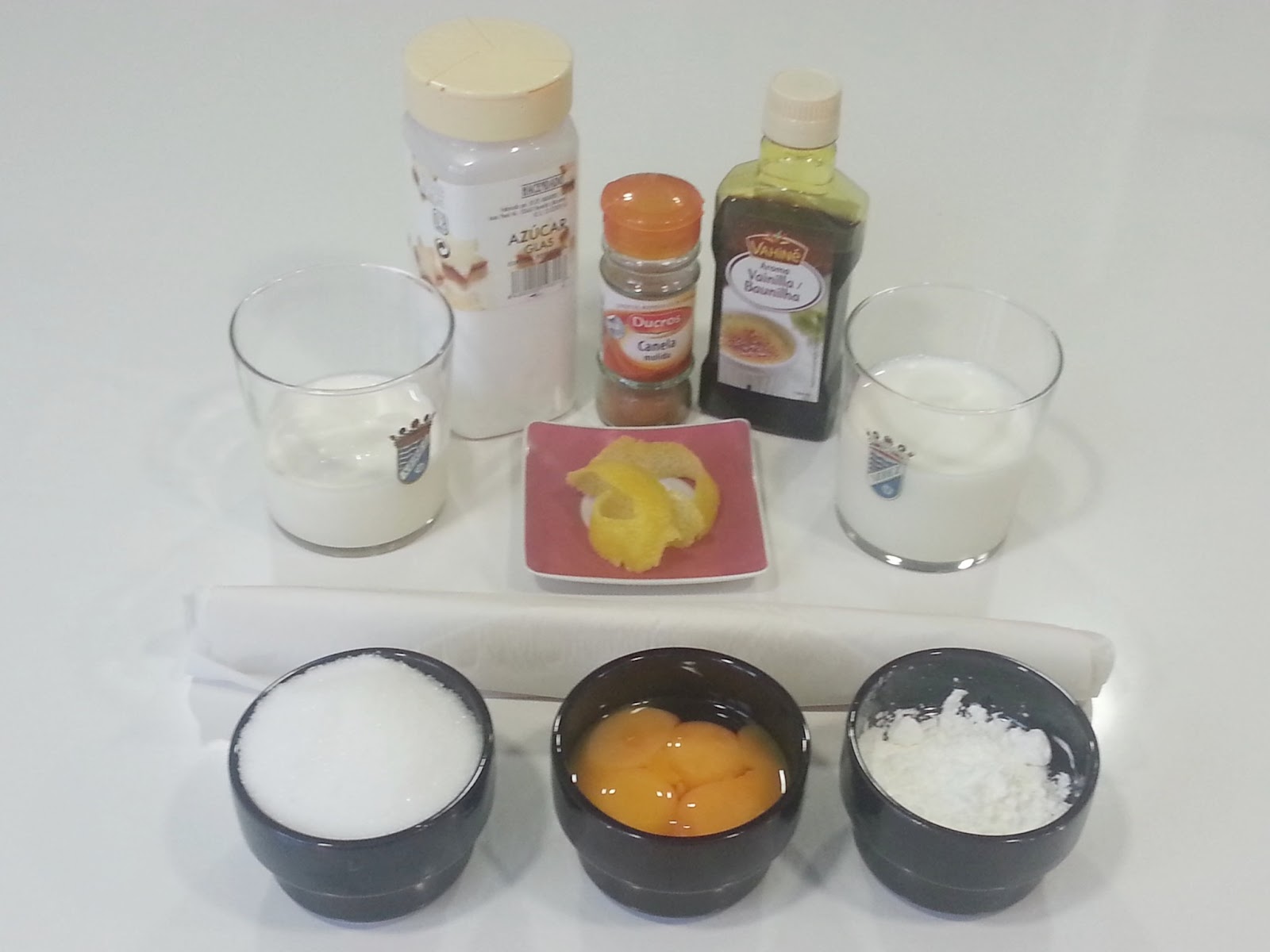 Ingredientes: 250 ml de leche 40 gr de harina de maíz (maizena) 150 gr de azúcar un poco de corteza de limón entera 150 ml de nata (crema de leche)