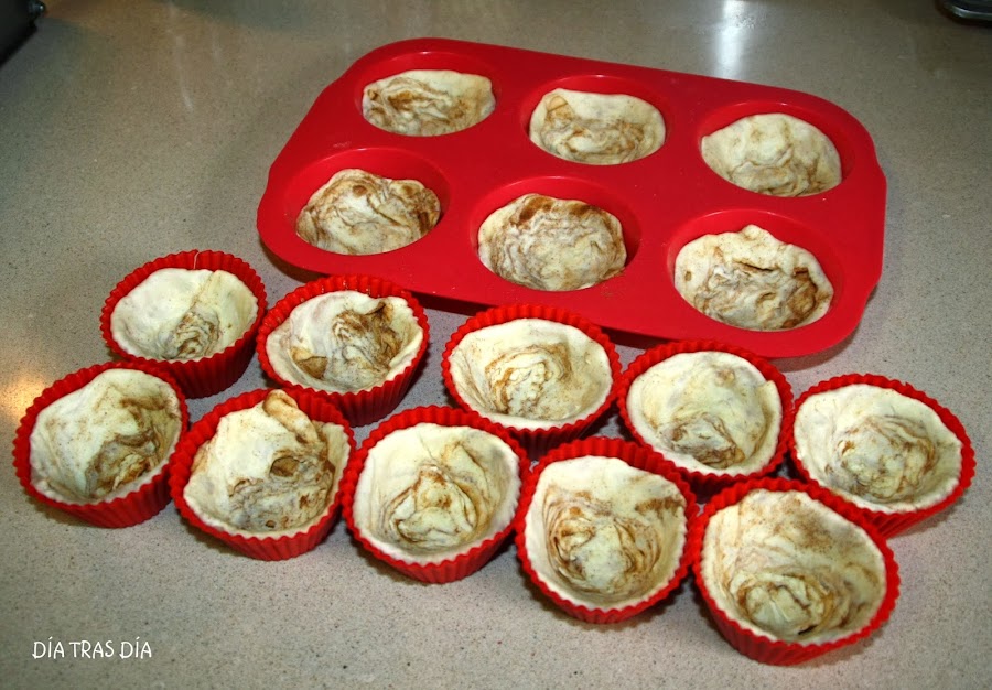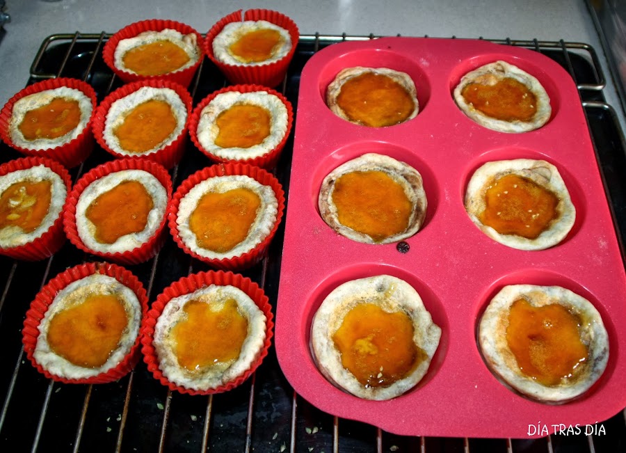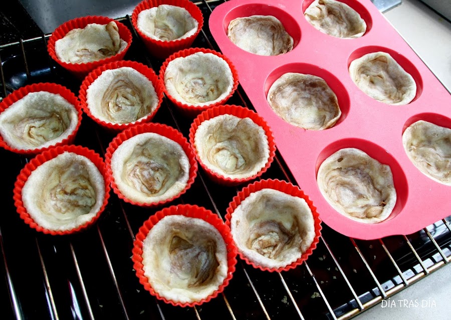 Aquí podéis ver cómo quedan las ?tortas? ya colocadas en los moldes: