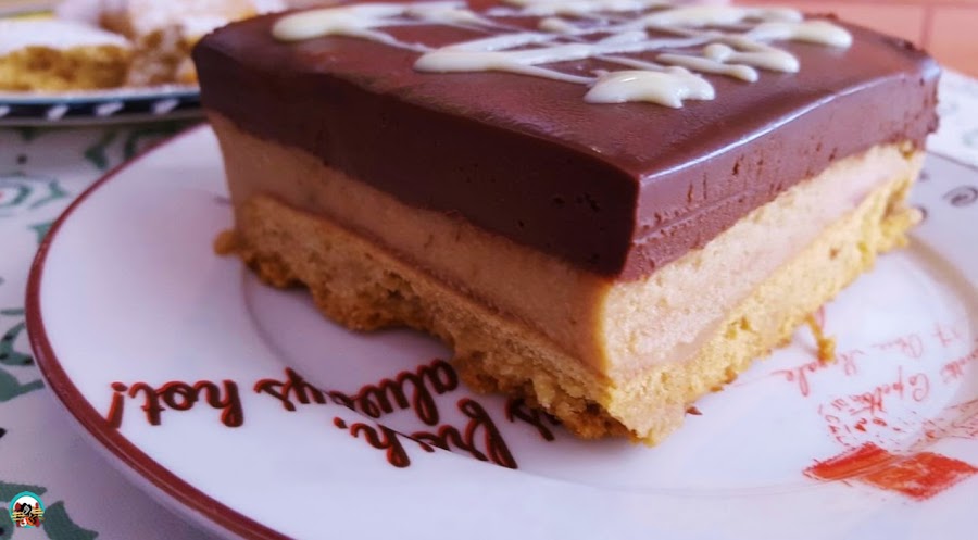 Volviendo al tema de antes. El pastel de hoy, lo hice en varios días, primero la galleta, al día siguiente el caramelo y el tercer día hice la ganache de chocolate, decore los pasteles y realice todas las fotos. También disfrutamos de él en casa.
