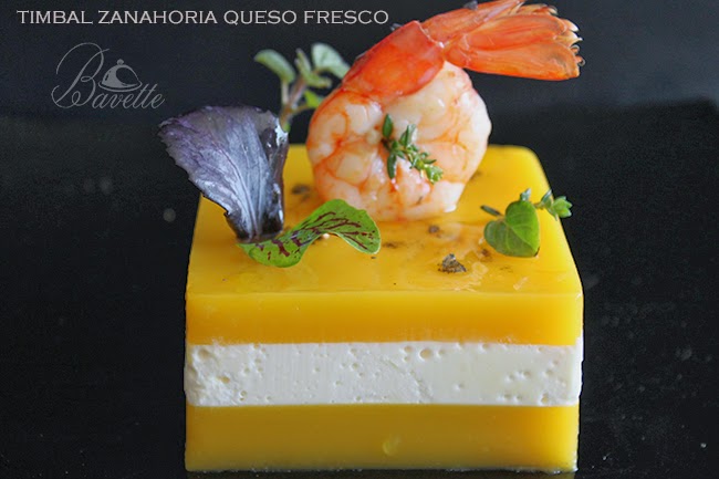 Siempre sorprendente Ettore y hoy de ninguna manera iba a ser menos con éste TIMBAL FRIO DE ZANAHORIA CON QUESO FRESCO Y GAMBAS.