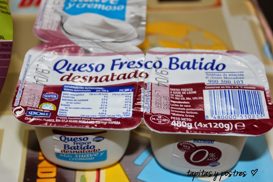 Hacemos la crema de queso. Este es el queso que he usado, es bajo en calorías, sin grasas, pero podeis poner requesón o philadelphia.