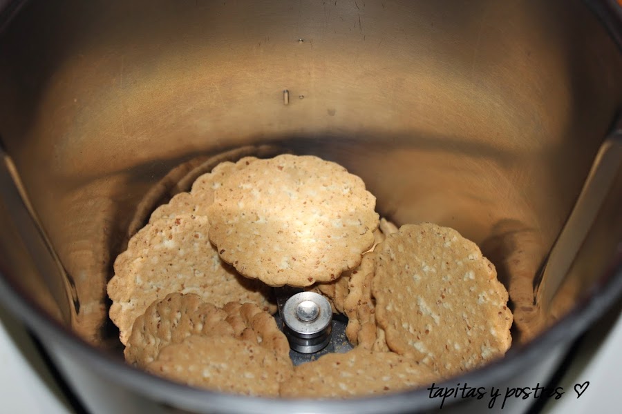 Ponemos las galletas en el vaso y las trituramos 10 segundos a velocidad progresiva 5-10.