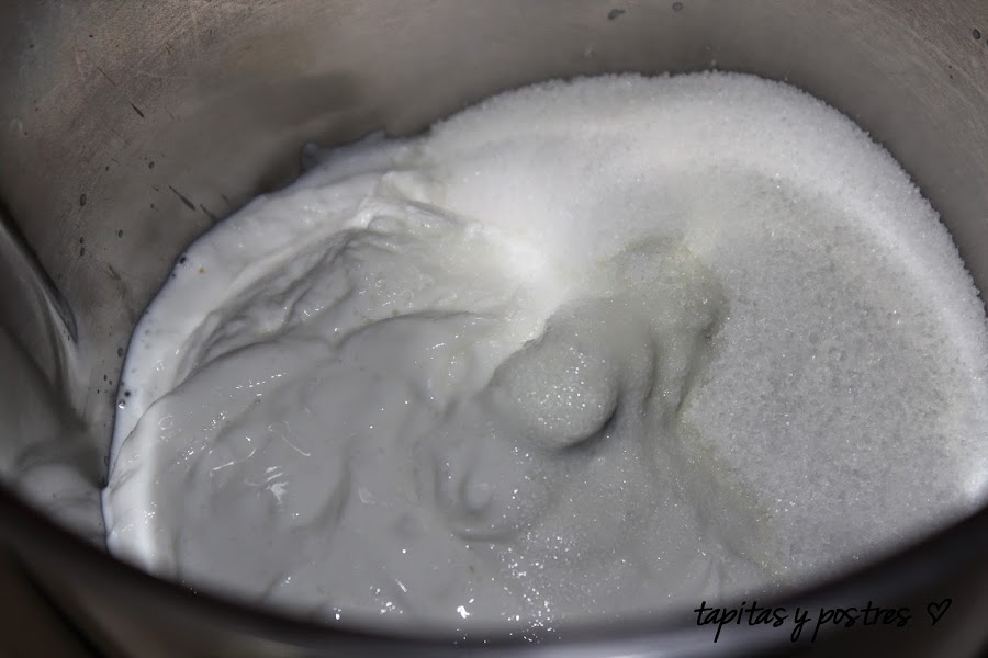 Lo ponemos en el vado con las dos clases de azúcar. Lo batimos.