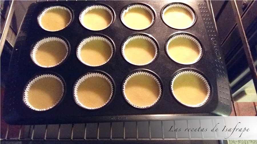 Al tratarse de pastelitos lo ideal es realizarlos directamente sobre moldes pequeños o molde para magdalenas con doce huecos, previamente engrasadas ambas cosas, pero no me quise arriesgar a que en el momento de desmoldarlos se me rompiesen, así que opte por hacerlos en el molde para magdalenas con sus correspondientes papelitos. Así me aseguraba que no se rompiesen, solo hay que quitar el papel una vez fríos los pastelitos y nada más.