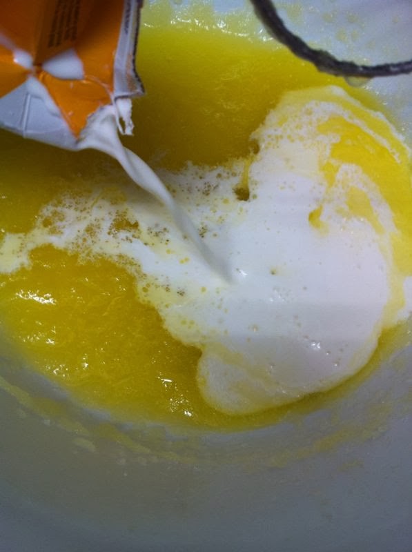 Una vez lista, añadiremos el vaso o lo que es lo mismo 200 ml de nata (crema de leche) liquida, y mezclaremos con las varillas.