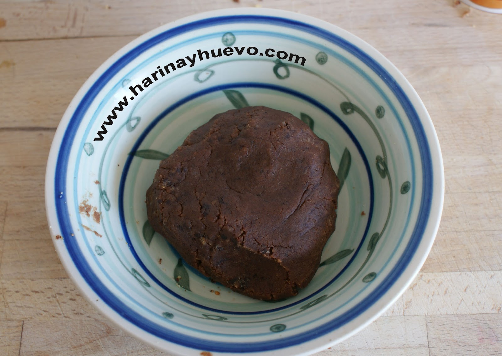 Como veis yo he mezclado bizcocho de vainilla y bizcocho de chocolate. A esto le echamos la crema de cacao, más o menos 2 cucharadas por cada 10 de bizcocho. Ir echando la crema poco a poco ya que al principio parece que hay poca pero según vamos amasando el bizcocho se irá integrando y es mejor no pasarse. Os tiene que quedar una pasta como la de la foto.