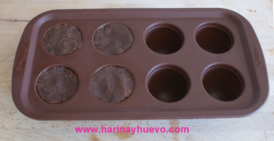 Esta masa la podéis moldear con las manos, extenderla y cortarla con un cortador de galletas o meterla en un molde de silicona como he hecho yo.