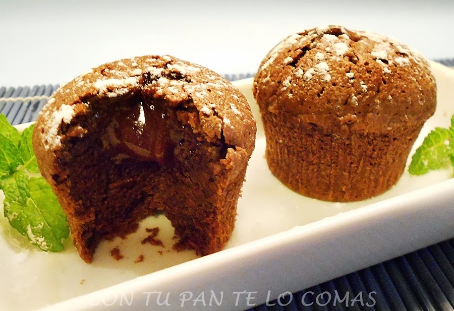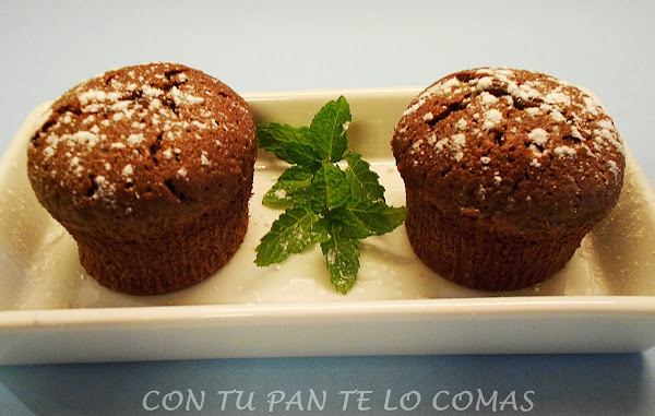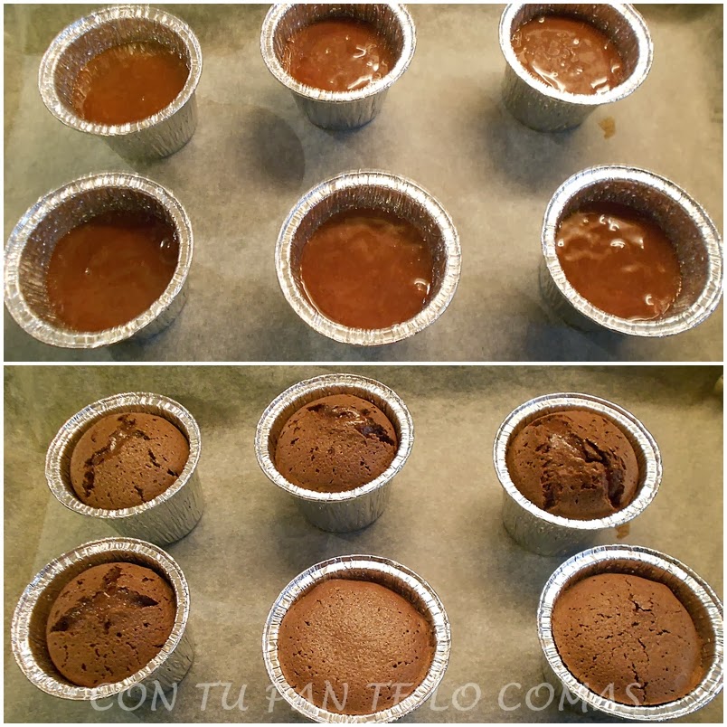 Al final ha salido una mezcla, porque por dentro estaban medio hechos, que es en lo único que se parecen a lo que deberían haber sido... podrían ser un coulant de chocolate, pero el chocolate debería quedar más líquido... así que los he llamado pastelitos y a correr!