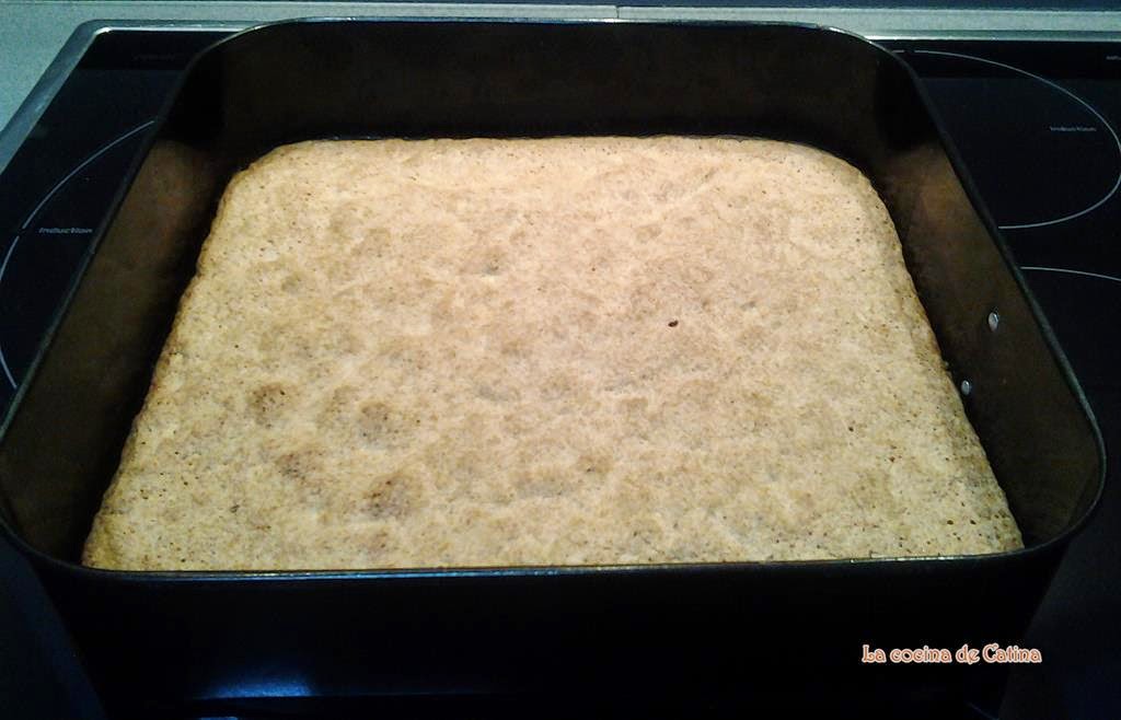 La extendemos en la base de un molde para horno de 32 x 22, cocer a horno moderado durante 10 minutos.