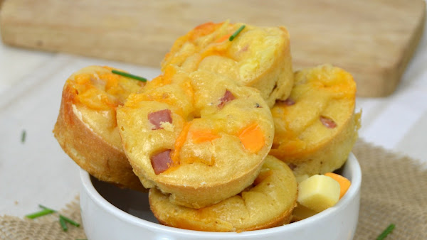 Además les puedes dar tu toque usando el queso que más te guste, cambiando el jamón cocido por pavo o pechuga de pollo o añadiendo alguna especia ¡Seguro que ya tienes tu versión de estos pastelitos salados en la cabeza! ¿A que si?