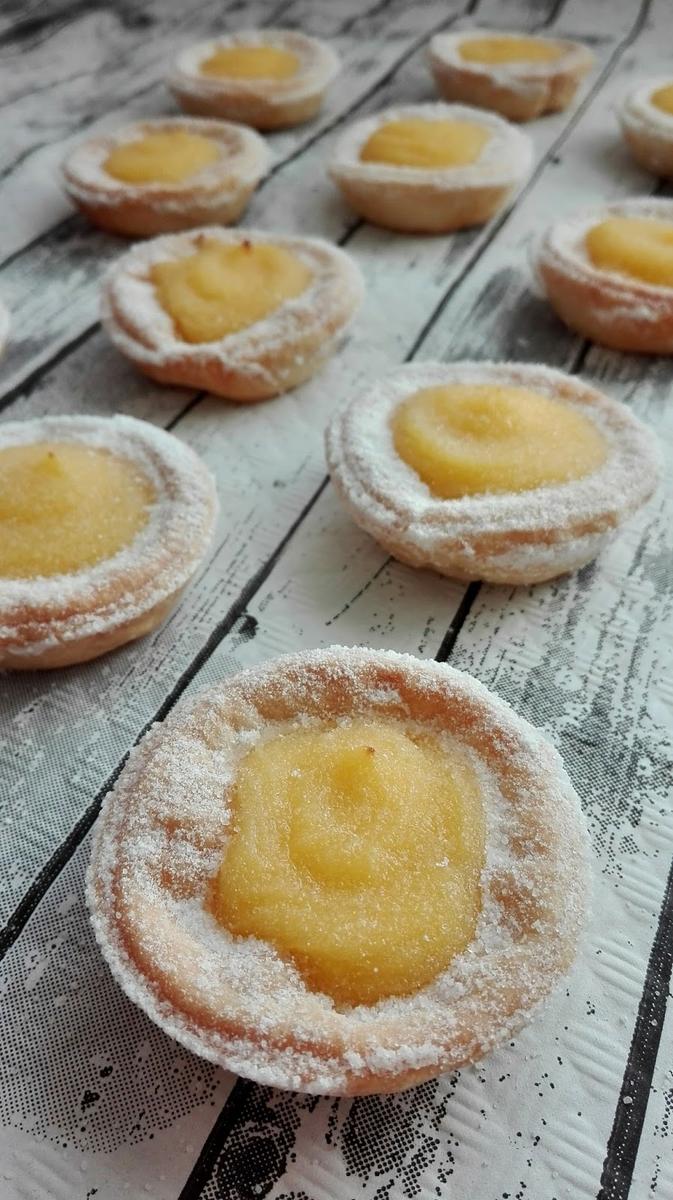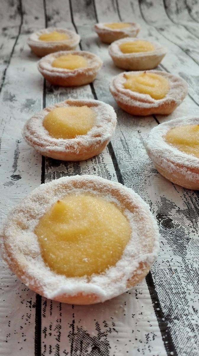Siguiendo con recetas facilitas y listas en un santiamén, os propongo estos pequeños bocaditos de masa Brisa rellenos de una crema refrescante de limón ó Lemon Curd.