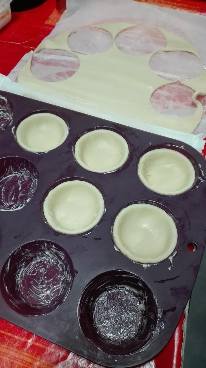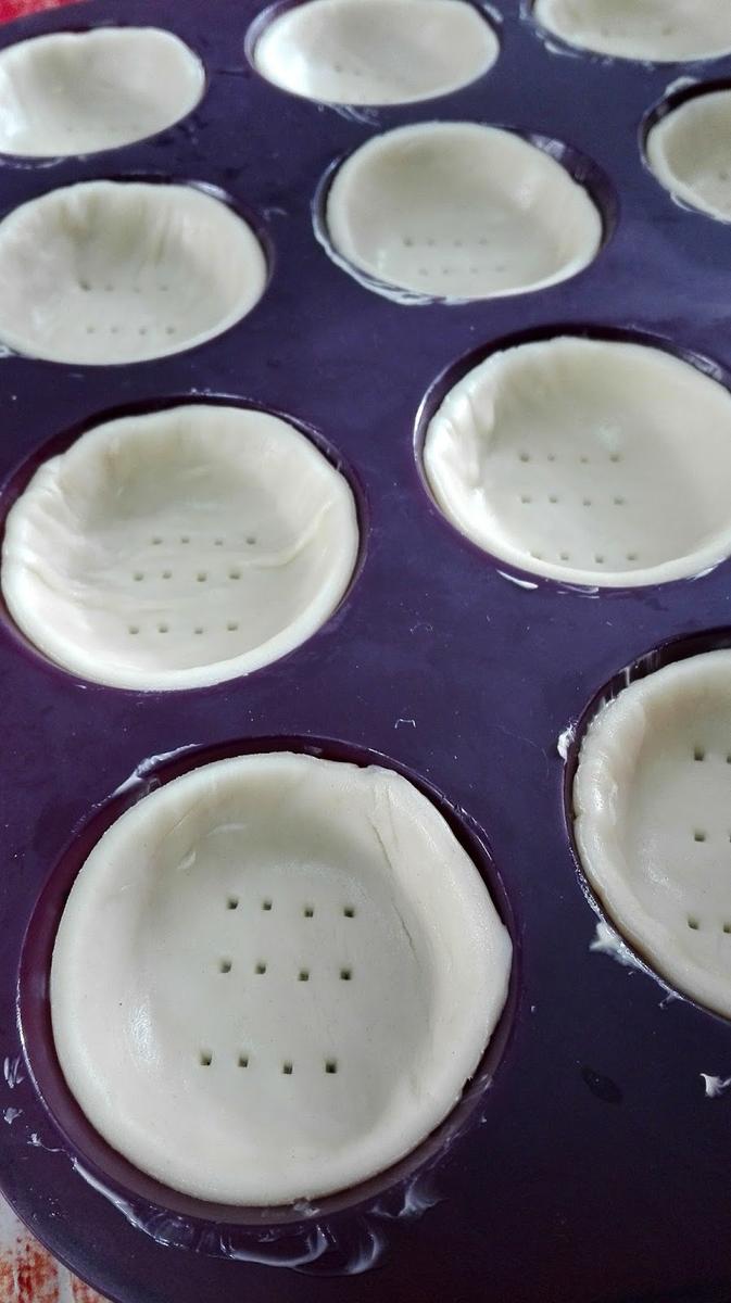 Extendemos la masa brisa y cortamos círculos de masa que vamos a ir repartiendo en los huecos del molde ajustando y presionando ligeramente