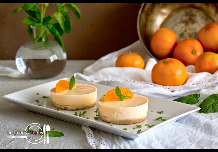 Recientemente habíamos hecho un "Semifrio demandarinas" y no era cuestión de repetir el mismo postre. Total que pensamos hacer estos pastelitos individuales que llenaron la cocina de un persistente olor a mandarina, porque si una cosa tiene este cítrico es su intenso aroma. Otra característica es su vivo color anaranjado, y en el caso de las mandarinas clementinas, su justo equilibrio entre dulzor y acidez.