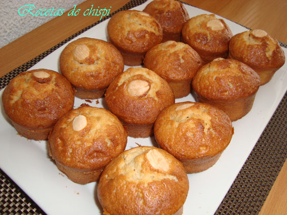 Echar en los moldes rellenando las tres cuartas partes y poner una almendra por encima de cada una.