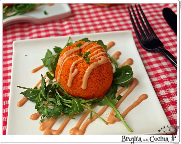 Sacamos una vez hecho y dejamos enfriar totalmente antes de desmoldar. Acompañamos con rúcula o lechugas y salsa rosa.
