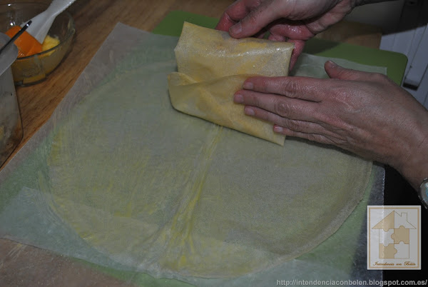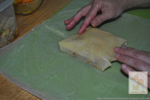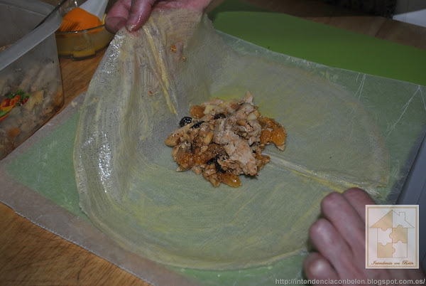 Ponemos el relleno en el centro y doblamos como si de un paquetito se tratara.