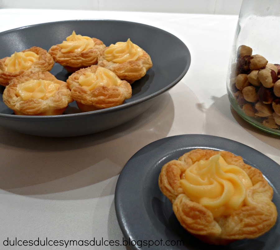 Hola de nuevo!! Después de dejaros estas semanas un poco abandonados, volvemos con una receta fácil y rápida pero sobre todo, muy rica!! Son unos pastelitos con base de hojaldre y como relleno, hemos optado por el praliné (buenísimo!!) y una crema con un toque a limón. Con las medidas que os damos, podeis hacer unos 12 pastelitos. Os dejamos el paso a paso:
