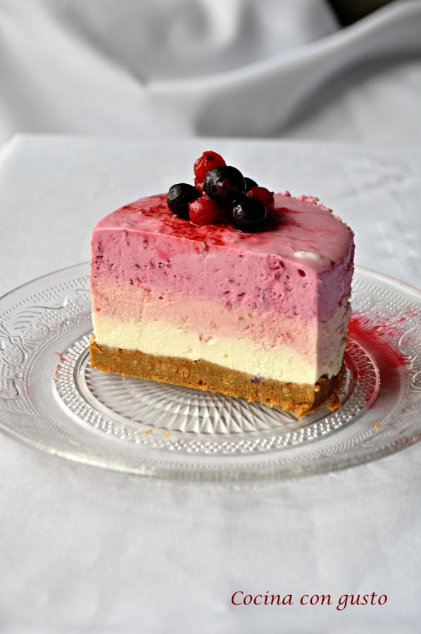 Buenos días. Estamos un poco en modo off, no sé si por el calor (antes eran las lluvias, ahora el calor) o porque en esta época del año hay muchas cosas que hacer y la cocina se queda un poco en segundo plano. Pero bueno, hoy me reactivo para preparar con mis compis de reto, Blanca, Noemí,Patricia y Roció, una nueva receta. En esta ocasión Blanca, autora del blog, Tu ves y y hago, nos ha propuesto esta delicada y fresquita receta: PASTELITOS DE QUESO DE TRES BAYAS del libro "Boutique de pastelería"