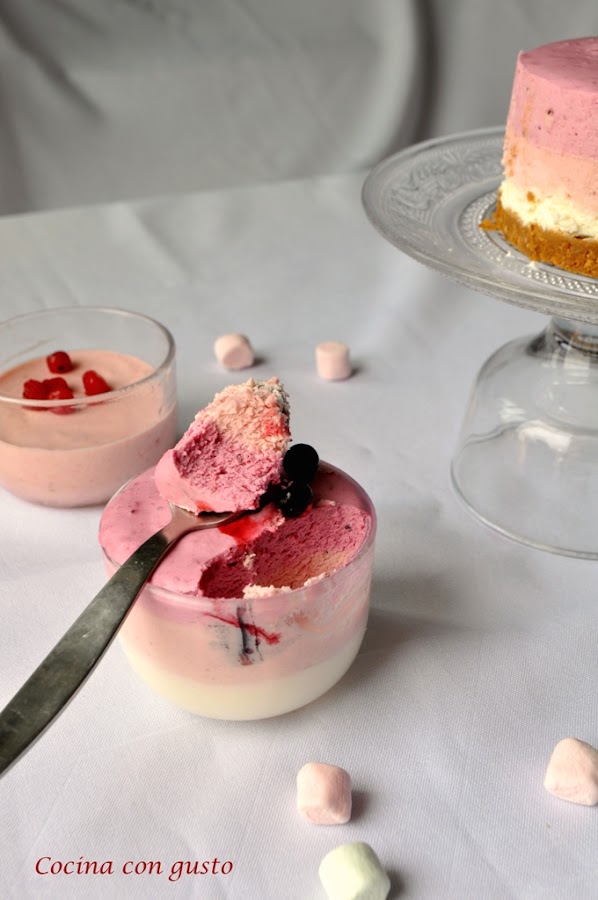 El resultado, un delicioso postre tipo mousse muy rico con un intenso sabor a frutos rojos que contrasta con el queso a la perfección