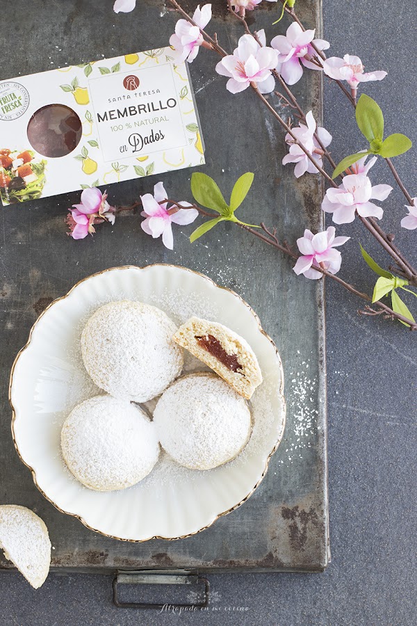 La propuesta de hoy viene con un ingrediente otoñal, el membrillo. El dulce de membrillo del interior de estos pastelitos lo podéis preparar vosotros mismos en Thermomix o de forma tradicional. O podéis usar alguno comercial como el de Santa Teresa Gourmet como he hecho yo en este caso. Lo tenemos en varios formatos, y el ideal para estos pastelitos es el que viene ya en dados. La receta me sedujo desde que la vi en la revista Lecturas y no nos ha defreaudado. Tiene la textura de la masa de las típicas galletas de mantequilla pero más esponjosas por el añadido de la levadura.