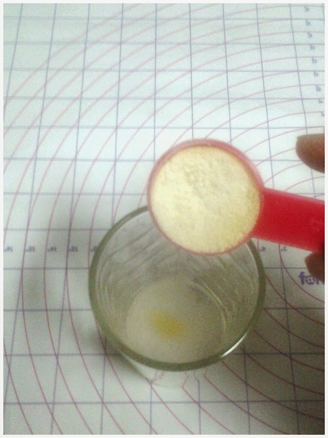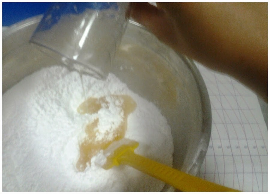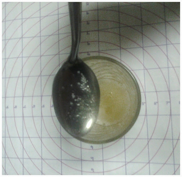 Y ahora vertemos el colapez disueto, sobre el azúcar impalpable unimos .