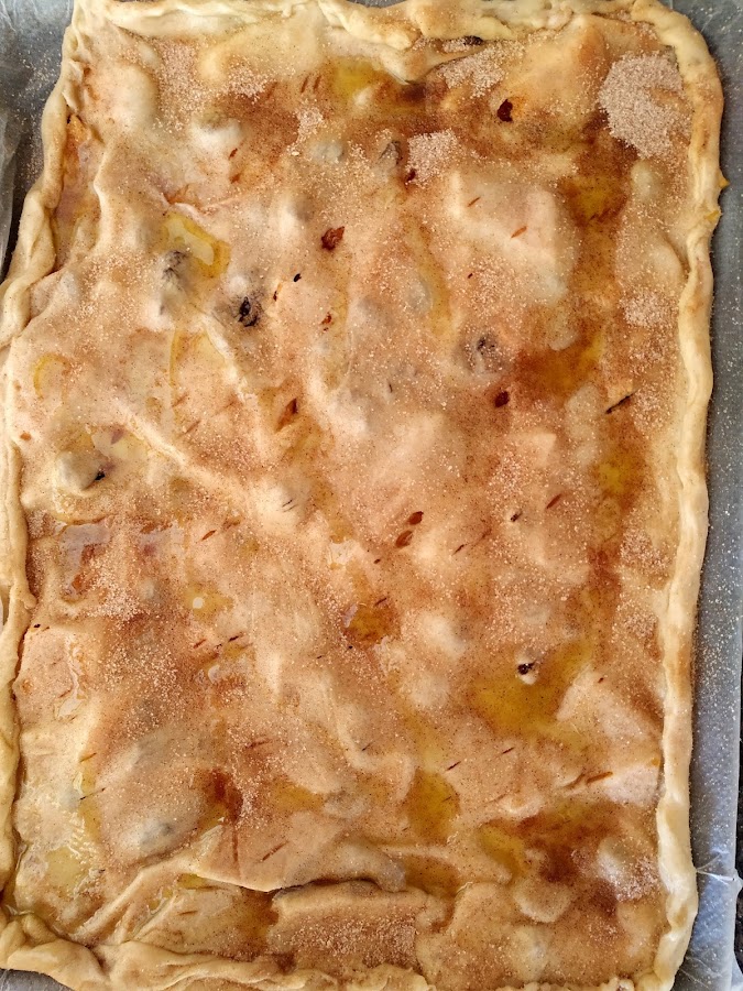 Espolvoreamos de nuevo por encima azúcar con canela y vertemos otro chorrito de aceite de oliva.