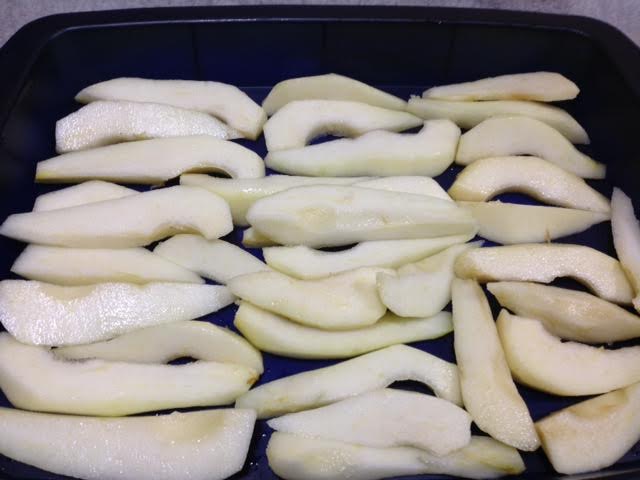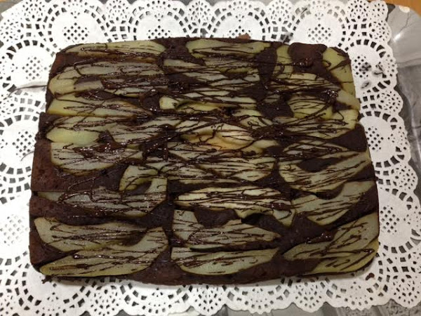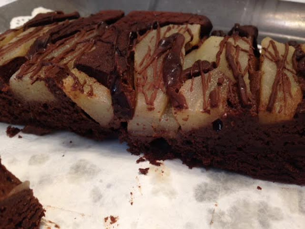 fonem la xocolata i seguidament li incorporem la mantega. En un altre recipient barregem els ous amb el sucre i quan estugui ben integrat afegim la farina i el llevat. Per últim incorporem la xocolata a la barreja dels ous i la farina i barregem bé. Pelem les peres i els hi treiem el cor, les posem en un motllei li incorporem la barreja. Ho introduïm al forn durant uns 30-35 minuts. La treiem del forn i quan ja està freda li donem la volta i la decorem amb més xocolata o amb nata (crema de leche)...