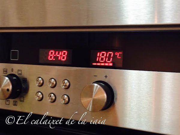 a 180º durante solo 12 minutos en mi horno, controlad el vuestro porque cada horno es un mundo y necesita unos tiempos