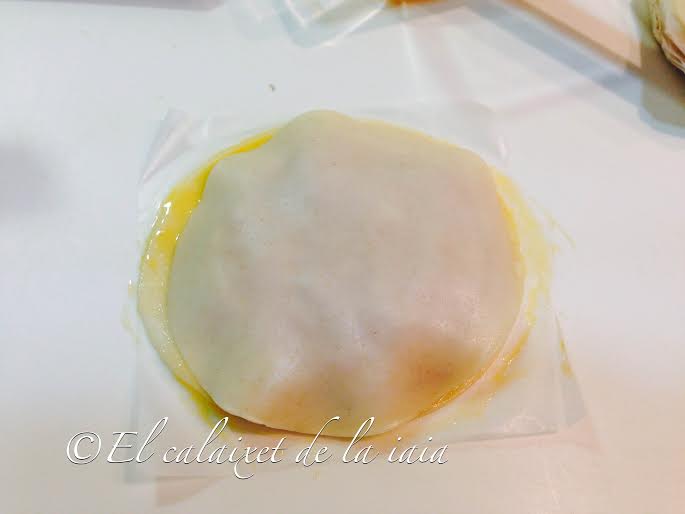 cubrimos con otra oblea y juntamos los bordes procurando que quede el mínimo aire posible y presionamos con los dedos