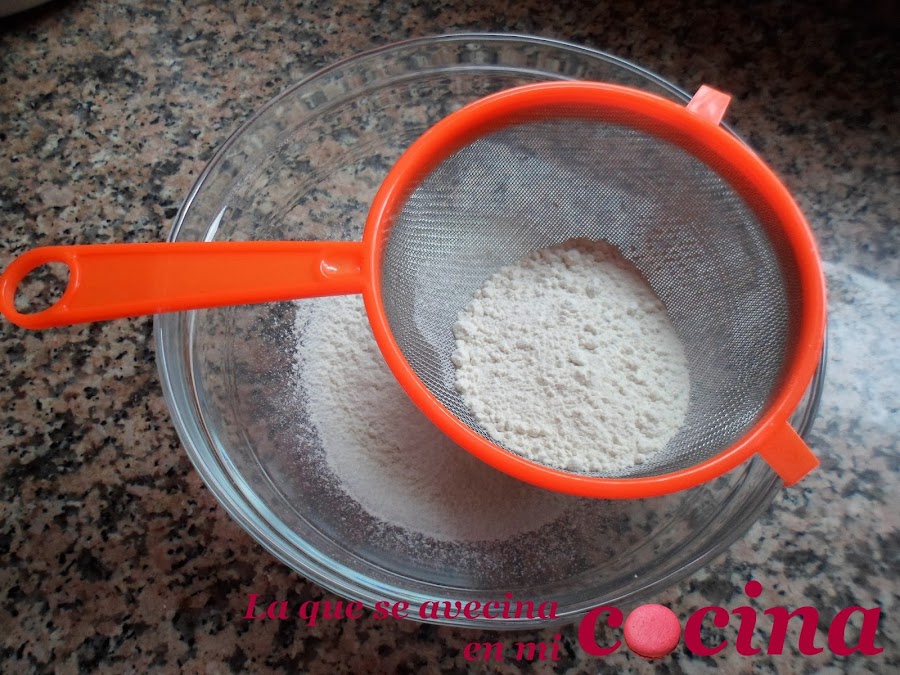Si no tenemos un tamiz en casa (como es mi caso) podemos usar un colador grandecito y con unos buenos toquecitos de muñeca conseguiremos el mismo efecto. Esto lo hacemos para evitar grumos en nuestra masa.