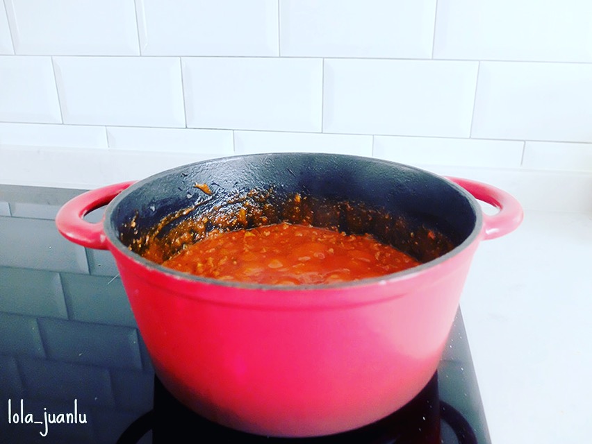Si usamos salsa de tomate casera mejor pero se puede usar tomate frito ya preparado.