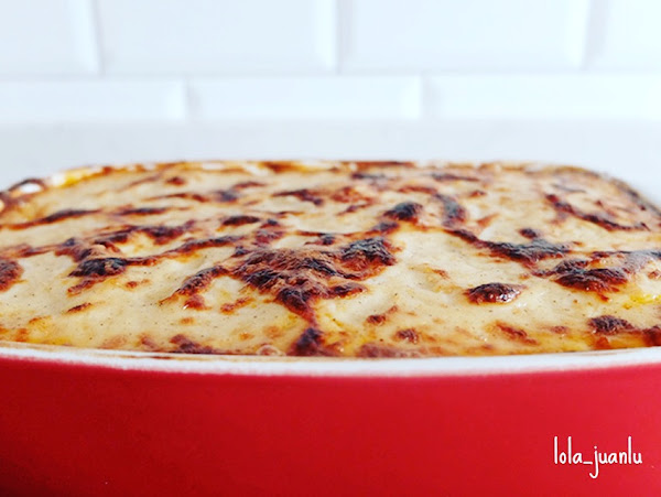 Y a servir un trozo de pastitsio a cada niño, ya veréis como se lo comen y alguno repite. Quizás los adultos también lo quieran probar, en mi cumpleaños quisieron probarlo todos, menos mal que hice suficiente.