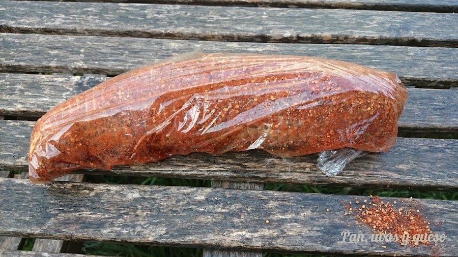 A la carne hay que someterla previamente a un proceso de curación, ya que es un fiambre. A mi me ha resultado un proceso muy curioso.