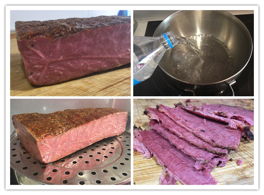 1. Para preparar nuestro sandwich, lo primero que necesitamos es hacer el Pastrami. El Pastrami se preparar al vapor.