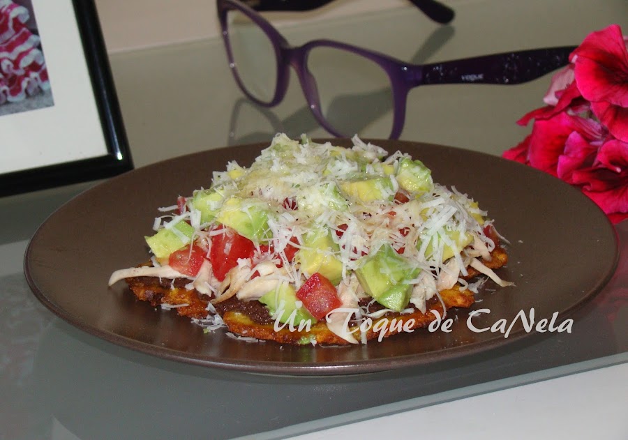 Aquí tenéis mi especial, Patacón Pisao con olivada, pollo, aguacate.....