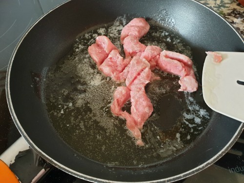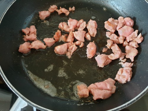 Añadir la salchicha y cortarla a trocitos