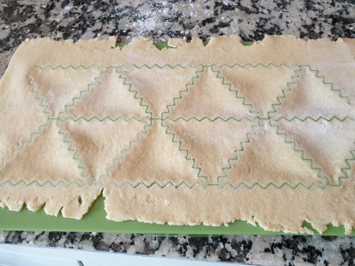 primero al 0, luego al 2 y por último al 4 . Cortar la pasta en triángulos