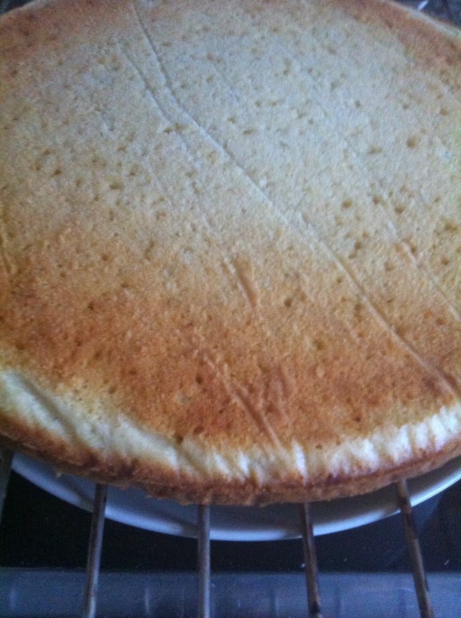 Cuando tengamos listo el bizcocho, lo dejamos enfriar y lo desmoldamos. Ponemos sobre una rejilla y cubrimos con la cobertura.