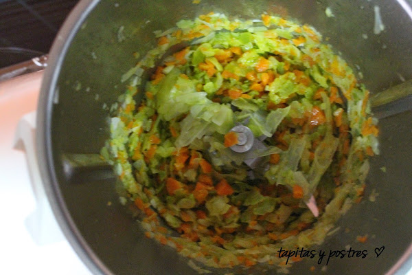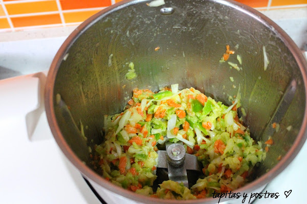 Ya tenemos las verduritas sofritas, si queremos que no se noten mucho, las podemos triturar más.