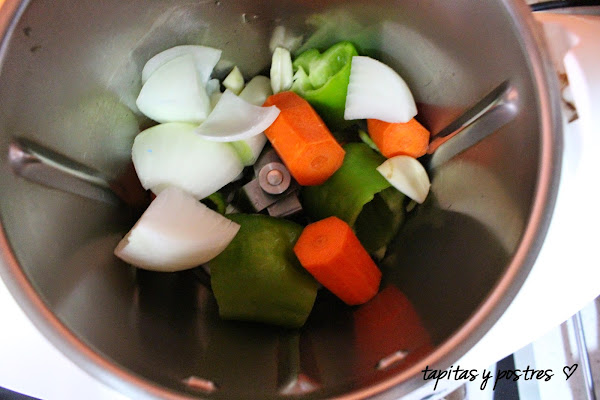 Ponemos las verduras en el vaso con el aceite y las trituramos.